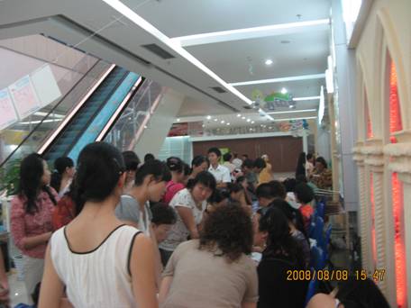 “万人观奥运,精彩零距离”活动专区总是围绕着密密麻麻的顾客,现场不时传来喝彩加油声。从奥运活动开始后,每天从一大早到临近商场结束营业时间,场内都是人潮满满。扣人心弦的赛事,激情投入的顾客,构筑了火一样热烈的现场。