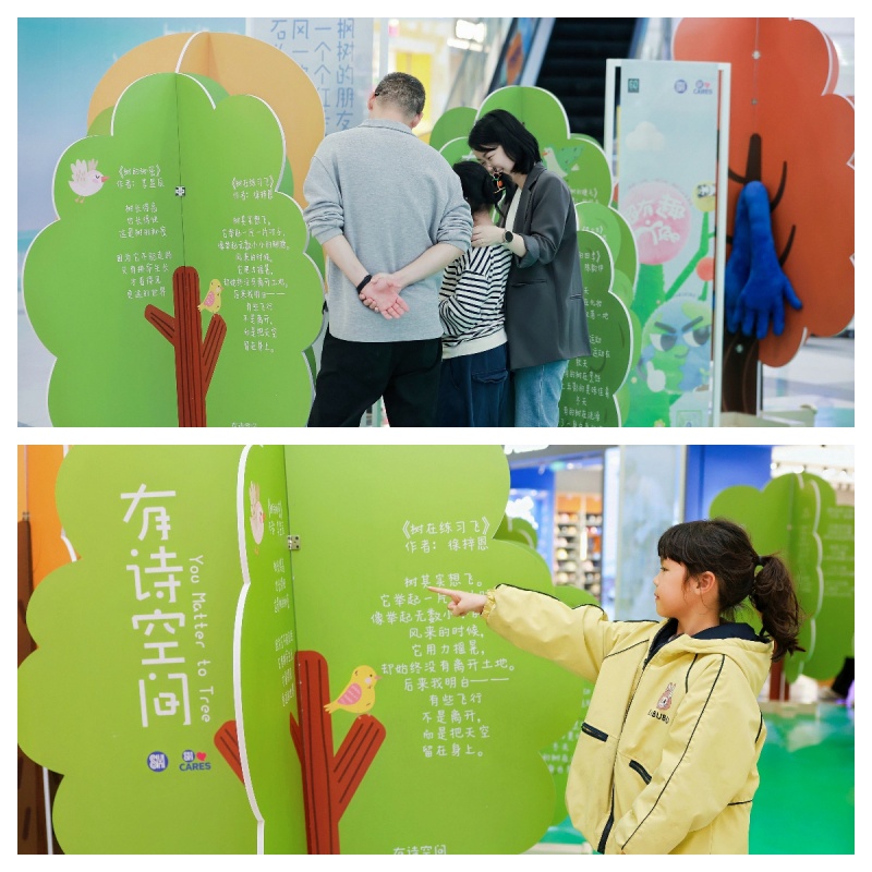 「有诗空间」@SM晋江1楼,展陈全国甄选的童诗佳作、大树爱的抱抱装置,还开辟有“种诗打卡区”,邀约每一位加入有诗共创;「大树会客厅」@SM晋江三楼小小世界,联动支付宝蚂蚁森林推出山桃、胡杨、樟子松等大树的拟人配对,与您共同装扮出独一无二的CP树;还有SM活阅小书馆@SM晋江三楼小小世界,阅读森林书籍、打卡Be a Tree创意墙板!