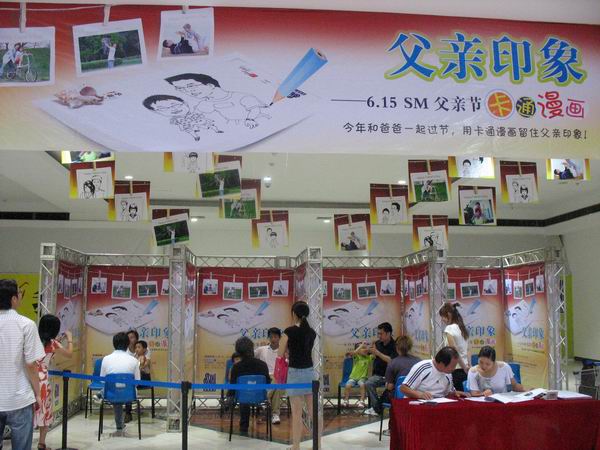 昨天是一年一度的父亲节,晋江SM国际广场推出“父亲印象”系列活动,邀请专业画师免费为前来的父子/女创作漫画和设计“父子/女”签名,为期两天活动共有近百对父亲和儿女参与活动,得到了精致的漫画作品。
