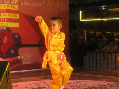 上图为:110号小朋友柳鹏表演精彩的“武林高手”