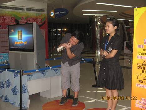 “奥运嗓门王”比赛吸引许多热情的顾客现场为中国加油呐喊。有趣的是参加人上台纷纷表示不是冲着奖项来的,而是想抒发自己为中国加油的心声,同时也希望自己的加油声能传到北京,传到健儿们的心中。勇敢喊出“中国加油”的顾客不仅引起现场的共鸣,也使其他在场的顾客备受感染,纷纷加入活动,大声、淋漓畅快的“中国加油”更是获得所有人的掌声。