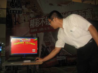 8月24日晚,晋江SM国际广场地下一楼舞台处座无虚席,他们正聚精会神地观看2008年北京奥运会闭幕式。精彩的演出赢得了现场观众的阵阵掌声,在热烈的气氛中,大家共同见证了北京奥运会的完美落幕!