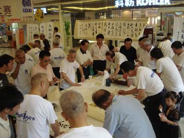 爷爷奶奶们参加比赛,自然少不了亲友团在一旁助威,为他们加油鼓劲。晋江青阳林炳坤爷爷的孙子和太孙女也在现场旁观爷爷书法表演。林爷爷的孙子、在晋江侨乡频道工作的林翀鹤告诉我们,林爷爷参赛还是他们给报的名,“想用一种特别的方式陪爷爷过中秋节”。而6岁的太孙女林韦杉则对林爷爷当天的表演十分自豪,“我觉得太爷爷的字写得非常棒!”。现场,来自晋江大剧院杨水声还当场写了一幅10米长书法。