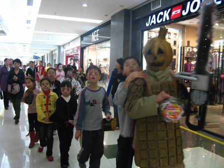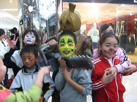 此次,SM举办的万圣节系列活动的一大“亮点”——南瓜勇士神秘现身SM万圣迷城。南瓜勇士的闪亮登场随即遭到商场内汹涌人潮的频频“袭击”。小朋友们一发现南瓜勇士便一拥而上,紧随其后。就这样一边巡游,一边分发糖果的南瓜勇士不仅将现场的“妖魔鬼怪”网罗旗下,在商场内“招摇过市”,还深得商场顾客朋友们的青睐,狂热追逐着南瓜勇士们的相机、手机,使他们俨然成为了2008万圣之王。