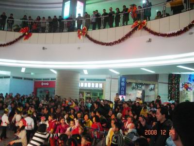 24日晚8点,SM广场二楼舞台现场热闹非凡。平安夜晚会上,小丑魔术、少儿拉丁表演,圣诞老人派发糖果等精彩节目轮番登场,小朋友们可是玩得不亦乐乎。大人们则在商场内尽情血拼后,纷纷加入“双人双飞香港品质4日游”抽奖活动,最后5位幸运顾客将在1月8日—11日期间一起分享圣诞大奖。
