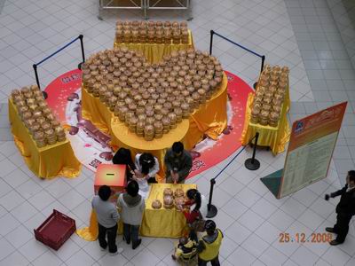 1200个小蛋糕堆成的巨大心形,正如顾客的一份份小小心意累积起来的无限爱心
