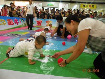 上周日,由晋江市妇联和晋江市文化体育局主办,晋江SM、金宝贝早教晋江中心及蜜儿港SM店承办的主题为“最牛宝宝”的晋江市第一届宝宝运动会在晋江SM拉开帷幕,近百名宝宝与爸爸妈妈参与了当天的比赛,体验到了亲子互动所带来的乐趣。此次宝宝运动会面向大泉州地区的所有适龄宝宝公开报名,采取三场初赛和一场决赛的形式,即日起到6月20日,只要您的宝宝年龄在0至3周岁即可报名参加。