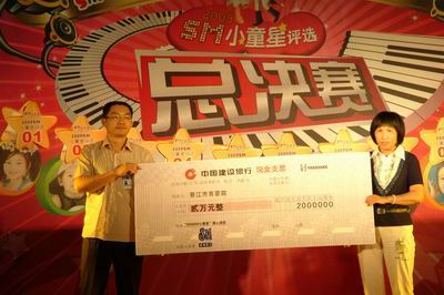 决赛当天,SM向晋江市育婴院捐款20000元,由晋江SM商场经理林榕先生代表SM向晋江市育婴院转捐支票,表达SM对育婴院“六一”节的节日祝福。