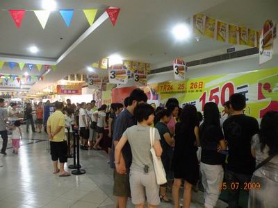 晋江SM 09年第二场火爆的三日热卖于7月26日圆满落幕。三日热卖期间,SM全场3-5折起,超低折扣;限时抢购,疯狂低价;满额送礼,购物还有“大”惊喜……让广大顾客吃、喝、玩、购样样乐不停!SM场外车场爆满,场内店人潮涌动,商家、顾客都忙地不亦乐乎。