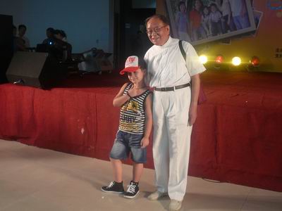 老少同乐,老年艺术团团长秦惠中与小童星张锦源