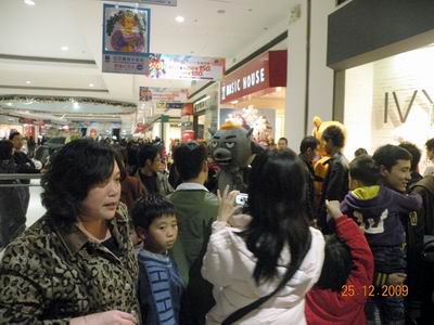 而最让小朋友们开心的是“喜羊羊”和“灰太狼”从电视里走进SM啦!可爱的卡通人偶们还带来了甜美礼物,不管他们走到哪里,都受到大小朋友们的“围堵”,大家争先恐后的与人偶们合影,俨然成了圣诞人气之王!