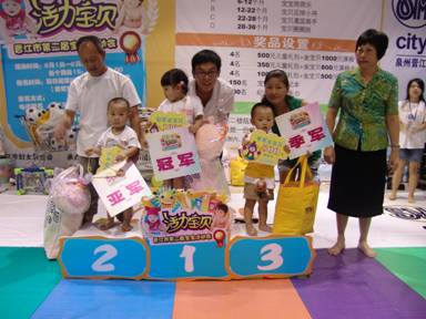 做活力宝贝,让快乐加倍。在持续一个多月的宝宝运动会赛事中,许多运动小健将们在激烈赛事中脱颖而出,获得了决赛晋级卡,并于8月29日再次相聚SM广场,为大家带来一场充满着无限乐趣的宝宝运动大比拼,也让许多家庭在这里度过了一个难忘的快乐周末。 比赛前,许多小宝贝还在呼呼地睡着大觉,一副事不关己的样子,比赛一开始,就个个活灵活现起来,颇具专业运动员的架势。赛事精彩纷呈,但引人注意的不仅是宝宝,还有旁边更加卖力的亲友团们,宝宝们有的爬,有的跳,有的投篮,有的踢球,使尽浑身解数,家长们也不闲着,爷爷奶奶手握奶瓶,尿布等后勤物品,在一旁为宝贝加油鼓劲,父母们则亲力亲为,陪宝宝参与到赛事的全过程中,体验比赛中的亲子乐趣。一人参赛,全家出动,一家老小齐心协力的场景为激烈的比赛增添了许多温馨的画面,宝宝运动会正如一场夏日里的家庭总动员,让全家人的力量在这个炎炎夏日里凝聚起来,收获快乐的同时也让宝宝在这里得到展示自己和锻炼的机会。 随着4个组别冠亚季军的诞生,本届宝宝运动会也随即来到了尾声,小宝贝们在这里得到了成长,收获了快乐,为自己留下难忘的儿时记忆。错过此次比赛的宝贝们也不必着急,第三届晋江市宝宝运动会将在10月底到11月份期间举办,运动小健将们快快来报名吧! 小小运动场 大大亲友团 我们像不像活泼可爱的小兔子呢 比比看,谁拿的球更多 足球小健将闪耀登场咯 不达目的地,誓不罢休
