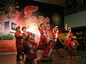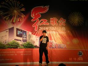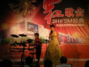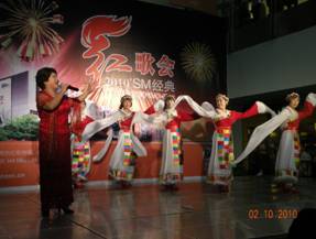 十月的秋风送来丰收的喜讯,美丽的祖国披上节日的盛装。国庆佳节到来之际,10月2日,老年朋友们在晋江SM地下一楼舞台欢聚一堂,参加由SM国际广场、晋江市老年大学联合举办的“2010 SM经典红歌会”表演,共同庆祝伟大祖国六十一华诞,一起赞颂祖国母亲六十一年的辉煌。 《好日子》、《我的祖国》,《在希望的田野上》等耳熟能详的曲目首先将红歌唱响。来自晋江市老年大学艺术团的老年朋友们引吭高歌,带动台下的观众们一起纵情歌唱。《泉州泉》,《高山青》等别具特色的舞蹈则揭开了表演现场的阵阵高潮;翩翩舞姿彷佛让我们看到了一幅国家昌盛和谐、人民幸福美满的画面,现场沉浸在浓浓的节日氛围里。老年朋友们用嘹亮的声音歌唱祖国,用精彩的舞蹈欢庆祖国生日;SM小童星、歌唱转转转选手们也带着《中国人》、《我爱北京天安门》、《我的中国心》等经典红歌闪亮登场,红歌新唱的形式博得了现场观众的阵阵掌声,为“2010SM经典红歌会”带来了一些新鲜的元素。最后,所有演员们齐登台,共同演绎好听的歌曲《自由飞翔》,“2010SM经典红歌会”在一片其乐融融中华丽落幕。 欢声笑语、浓缩着飞扬的激情;响亮红歌、寄寓着对祖国的美好祝愿。带着美好的期冀,我们放飞梦想,共庆佳节,再次祝愿祖国的明天更加繁荣昌盛! 翩翩舞姿为节日点燃了喜庆色彩 老年朋友们引吭高歌 纵情歌唱 SM小童星与歌唱转转转选手倾情献艺 新颖的伴奏形式让人耳目一新 摄像机、聚光灯……精彩表演聚集众多视线