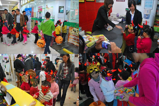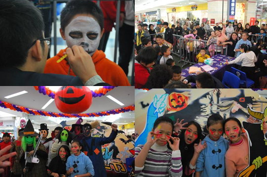 2010年10月23日至10月31日,SM成华上演魔幻嘉年华,盛况空前。Cosplay、鬼脸妆,trick or treat等经典又有趣的活动将小朋友们带到了万圣节的欢乐海洋。 从10月23日起,连续两个周末,SM成华二楼舞台上演时尚Cosplay秀,带着精美妆容、身着精致服装的Cosplayer为大家倾情演绎精彩剧目《加勒比海盗》、《黑执事》,精彩之处引无数Cosplay迷疯狂呐喊;SM小童星也到场激情助阵,冠军张馨月为大家带来了改编自Lady Gaga《telephone》的新舞蹈,让观众惊叹不已,将活动现场气氛推向高潮。10月31日这天,一群精心装扮充满童真童趣的的“小鬼”们组成巡游队伍,向SM各商户索要糖果。而一楼中庭“免费扮鬼脸,乐混万圣节”活动现场更是人头攒动,吸血鬼、僵尸、猫人等各种“鬼怪”在这里横空出世。 在SM成华万圣活动期间,凡消费满50元的顾客还获赠了SM送出的定妆照一张,照片定格了他们在SM欢度万圣节的精彩瞬间。至此,SM万圣节在欢乐的气氛中圆满结束。 加勒比海盗来SM过万圣节啦! 小童星和幼儿园小朋友助阵万圣节cosplay秀 现场成了一片欢乐的海洋 各种“鬼怪”横空出世 扮鬼也可以很可爱咯 精心装扮的捣蛋小鬼们兴奋地到SM各商户索要糖果
