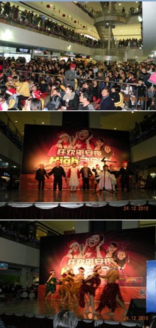 叮叮当,叮叮当,铃儿响叮当……2010晋江SM城市广场梦幻圣诞经过一个多月的蓄势铺垫,积攒了很高的人气,两千多份小美征文纷至沓来,几千个小美限量陶瓷罐被抢购一空,商场内的甜甜圈花灯及场外的绚丽灯画也为梦幻圣诞的营造增色不少,赢得了市民朋友们的频频称赞。