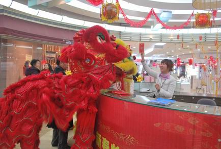 “福狮欢腾迎新春”醒狮活动于十点在SM中门外场准时开始,SM商场经理致新春贺词,专业的舞狮队在SM外广场和场内各租户店铺内都进行了热闹的醒狮表演,给友好租户以及顾客们拜年。