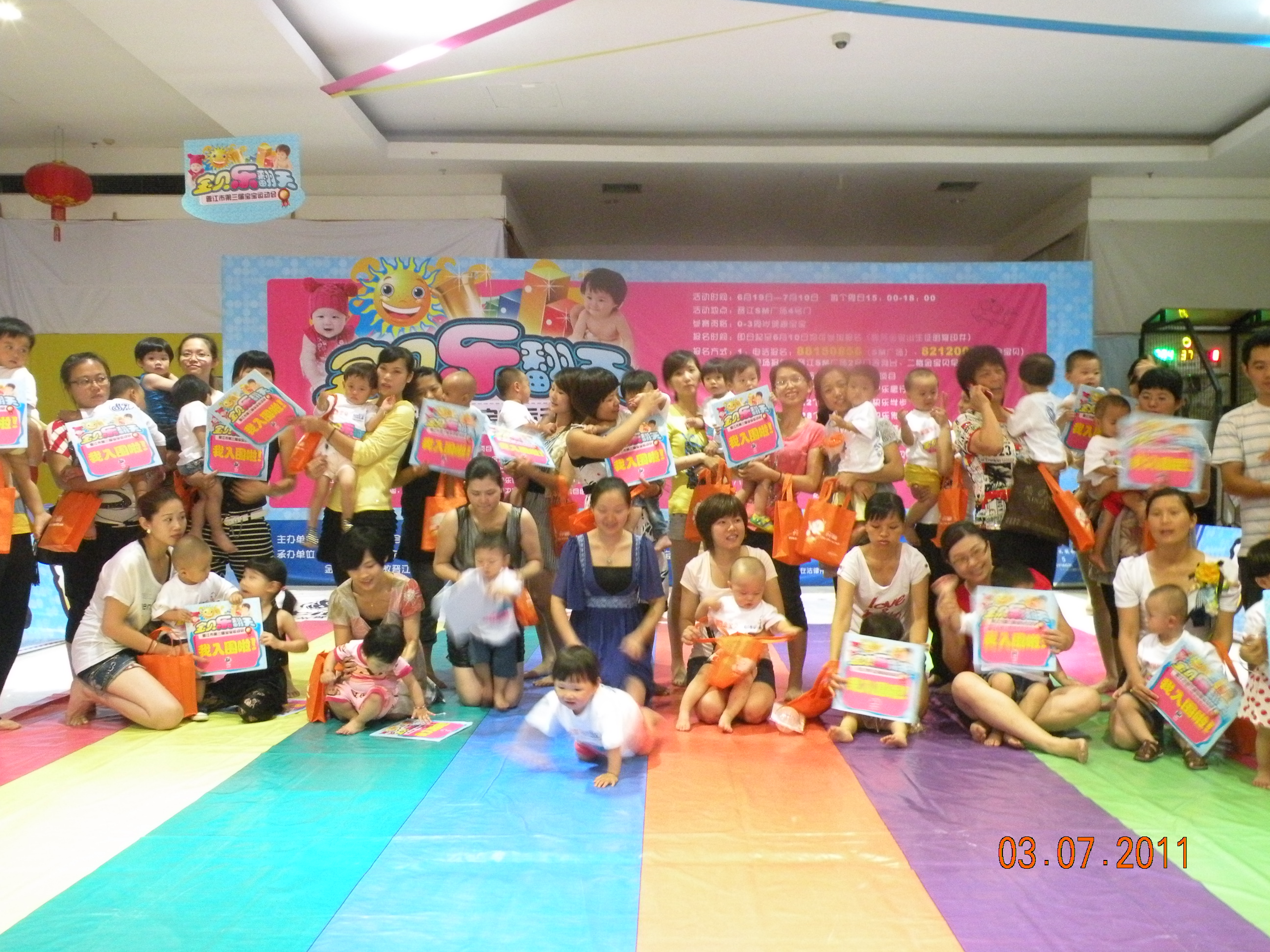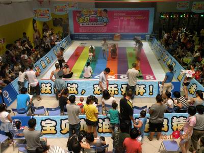 第三场的预赛相较于前两场而言,参赛人数最多,赛况更加精彩激烈。开赛前,主办方还不断接到家长们的报名电话,可见这个活动的受欢迎程度。许多家长早早来到比赛场地等候、练习,为的是让宝宝以最佳状态参加比赛。开赛后,家长们使尽浑身解数配合宝宝比赛,而宝宝们为了赢得比赛,更是连吃奶的力气都用上了。各种可爱逗趣的比赛场面,让在场的家长、观众、工作人员乐开怀。在紧张而欢快的氛围下,最后一场预赛圆满落下帷幕。