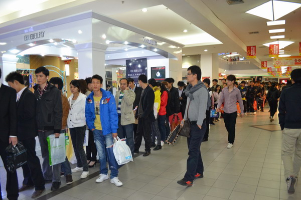 看不到抽奖队伍的尽头,却能看到顾客满怀希望抽到大奖的渴盼