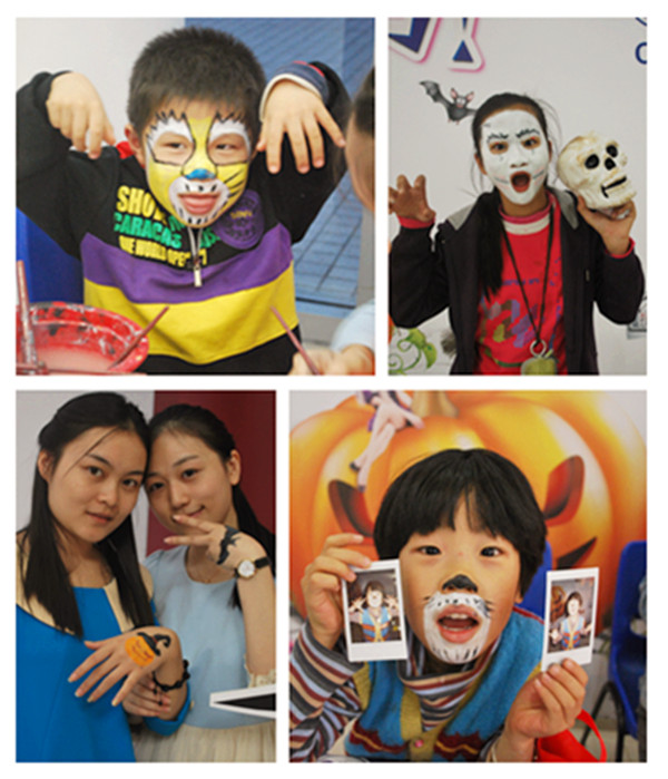 在SM广场人流旺盛的一楼北门入口,组织者安排了专人为参与活动的朋友们化妆,同时设置了卡通照相点供大家拍照。来变妆的不仅有小朋友,还有大朋友们,蝴蝶、骷髅、南瓜、蝙蝠……凡是能够想到的,化妆师们都能够帮大家实现。