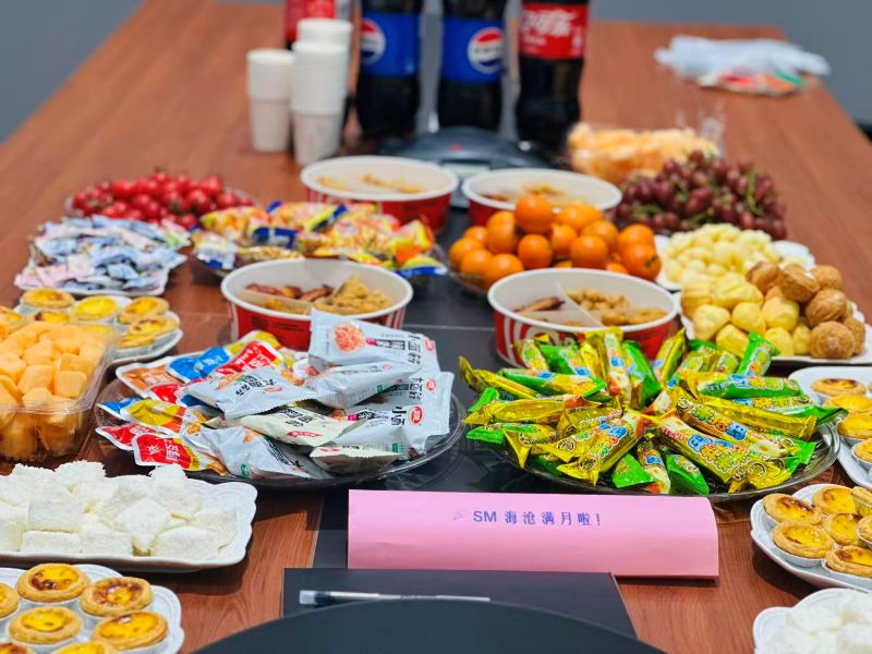 大家聚在一起,品尝着美食,分享着开业以来的点点滴滴,欢声笑语回荡在会议室里。满月,是成长的里程碑,更是奋进的新起点,今后SM海沧团队将以更饱满的热情、更务实的作风,携手共进,让SMHC海沧城市广场绽放更加耀眼的光芒。