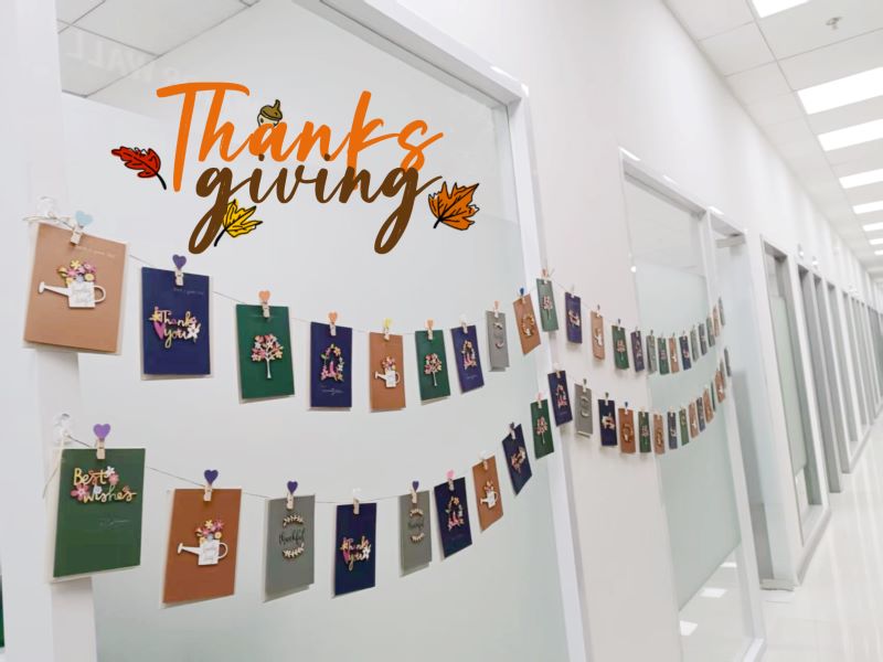 活动现场,HR团队化身为“感恩信使”,在各办公区域精心布置了感恩贺卡墙,各种封面的感谢卡就像一张张魔法信笺,静静等待小伙伴们开启感恩之旅。