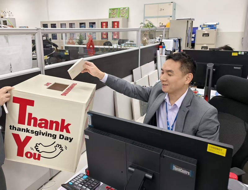 大家纷纷自取了感恩卡,匿名写下对其他同事的感谢,那些平日里藏在心里的温暖与感动,化作一句句真挚的话语,投入指定信箱。HR则像严谨的邮差,认真收集、分类,将这一份份的“神秘祝福”精准送达。