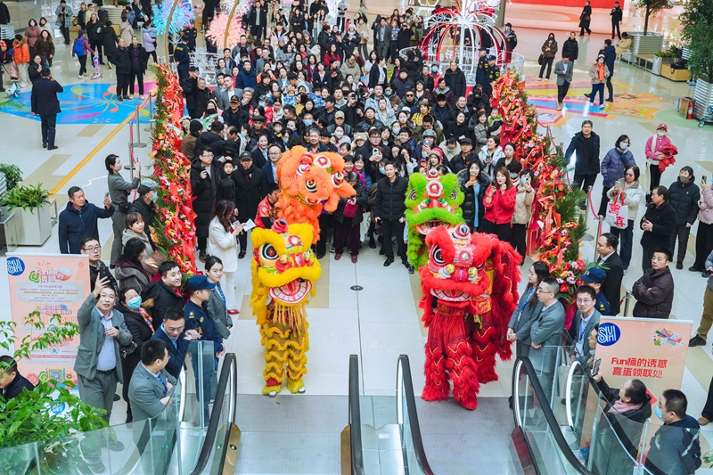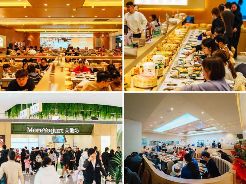 SM广场水环区域一直是商场客流聚集的核心板块,依托津城首家胖改永辉超市、配备天津最大IMAX影厅的万达影城等主力店,持续着吸引全城消费目光。此次焕新开放的水环三层,建筑面积约1.2万平方米,致力于打造覆盖全客层的“一站式”休闲社交空间,也标志着水环的繁华轴线实现了立体向上的自然生长。SM广场的蓬勃发展,既得益于商场持续的自我焕新,也离不开与租户品牌的双向奔赴,此次水环三层的华彩启幕,凝聚着双方的精诚协作与倾注心力。开业当天,在醒狮的欢腾引领下,顾客搭乘全新飞天梯扶摇直上,直达焕然一新的水环三层空间。首批亮相的数十家优质品牌构成一幅诱人的消费图景:从备受推崇的现炒正餐泉哥炒土菜,到人气沸腾的网红火锅扶摇树下、张小叔、锅友;从风味地道的简餐格朗合、野郎、旮旯儿小犟骨,到口碑载道的饮品茉酸奶、九号原切牧场。此外,樊文花、菩叶、D5原舍、颜悦馨、卡古潮玩等女性服务与休闲娱乐品牌的入驻,更让这里超越了单纯的美食聚集地,进化为融合品质餐饮、精致服务与亲子趣玩的多元社交欢乐场,实现了餐饮与配套体验的有机融合。