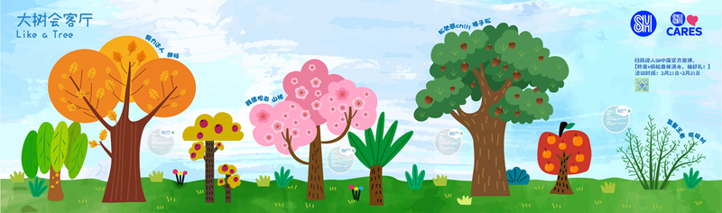 来SM认领你的树木CP,与TA“互动”,为TA“浇水”!3月21日-3月31日还能扫码参与线上蚂蚁森林抽奖,把可爱的抱枕带回家~